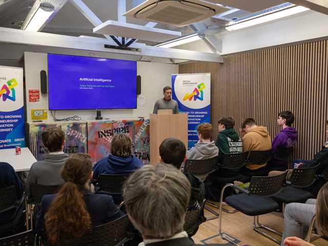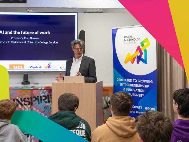 The Digital Innovators Student Summit took place on Thursday 13th March 2025 at the Digital Greenhouse. This summit was attended by a group of students from across the island looking to further their understanding of AI and how it is changing the future of work. They heard from Prof. Daniel Brown, University College London and Patrick Cunningham, Indulge.